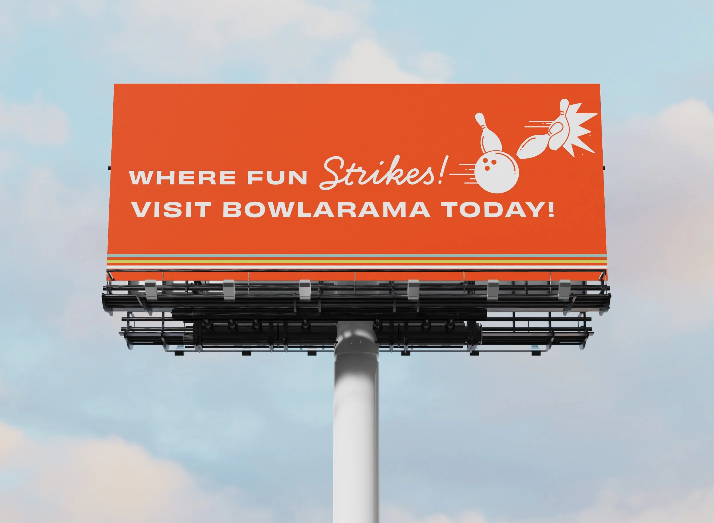 Bowl-a-rama has proudly been serving the Rowlett community for 20 years now. The goal aimed to align with Bowlarama’s classic retro bowling culture while modernizing its image to further enhance customer experience. To strengthen its appeal, a new typographic language was introduced to create a cohesive visual identity along with a new bold and vibrant color palette. Carefully designed to bridge Bowlarama’s retro roots with a dynamic visual identity, along with customized illustrations.